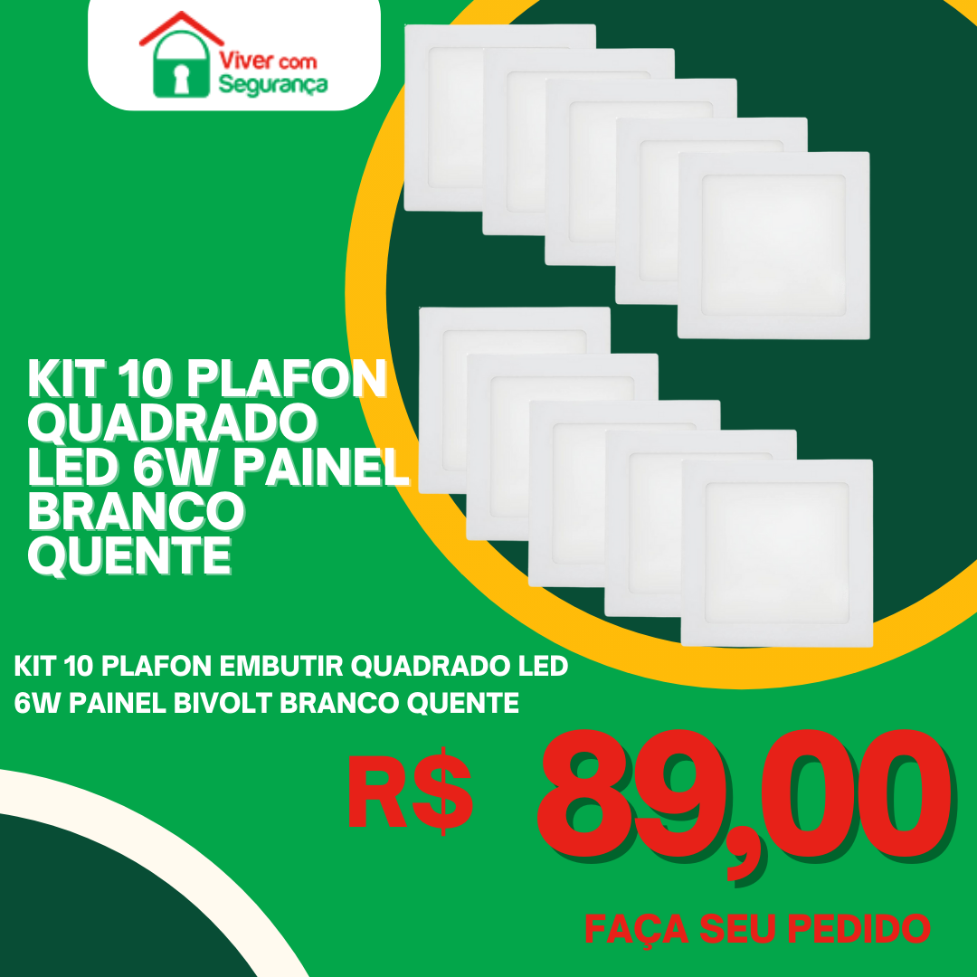 Ilumine seus ambientes com o Kit 10 Plafon Quadrado LED 6W! Perfeito para embutir, este painel bivolt oferece luz branca quente, criando um ambiente acolhedor e moderno. Economia e design em um só produto!